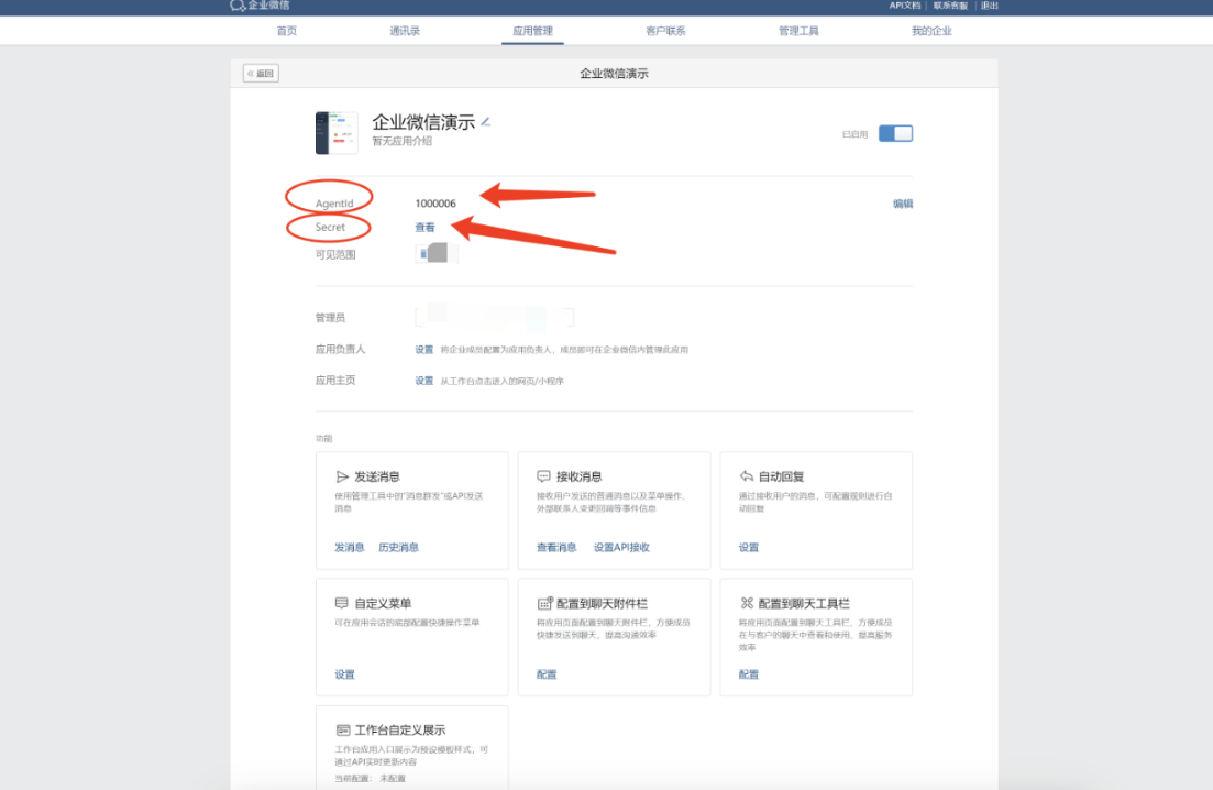 2、配置企业微信/创建应用/通讯录/客户管理等参数设置