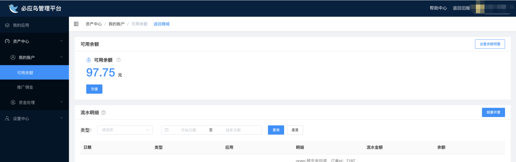 进入必应鸟资金管理