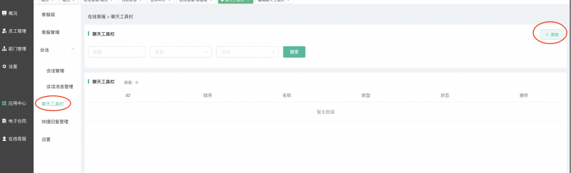 排序:显示在聊天工具栏中的排序,为了保证页面性能和用户体验,前端最多显示30条数据。可以通过排序控制显示顺序,排序越大,显示越靠前。